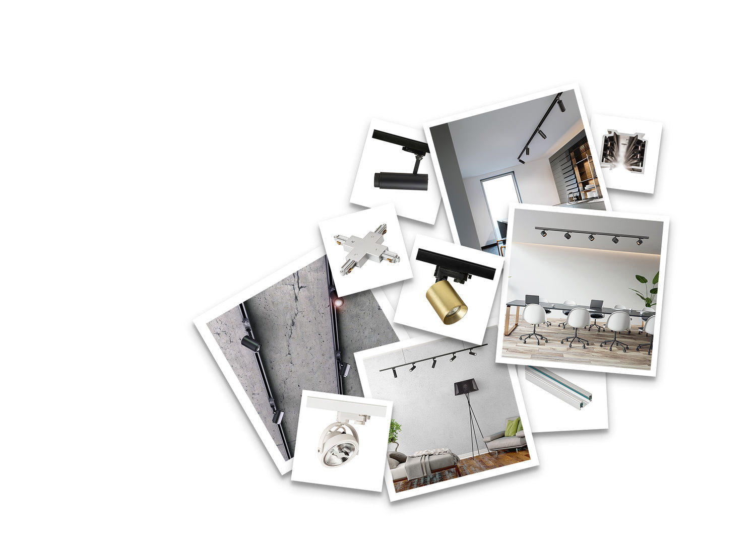 Sistema di binari universale, perfetto per tutti gli usi. Ideale per spazi residenziali e piccoli spazi commerciali.