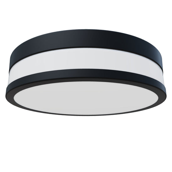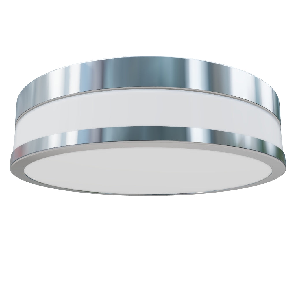 Plafoniera circolare a LED con vetro opalino piatto in montatura metallica. Adatta per ambienti umidi.