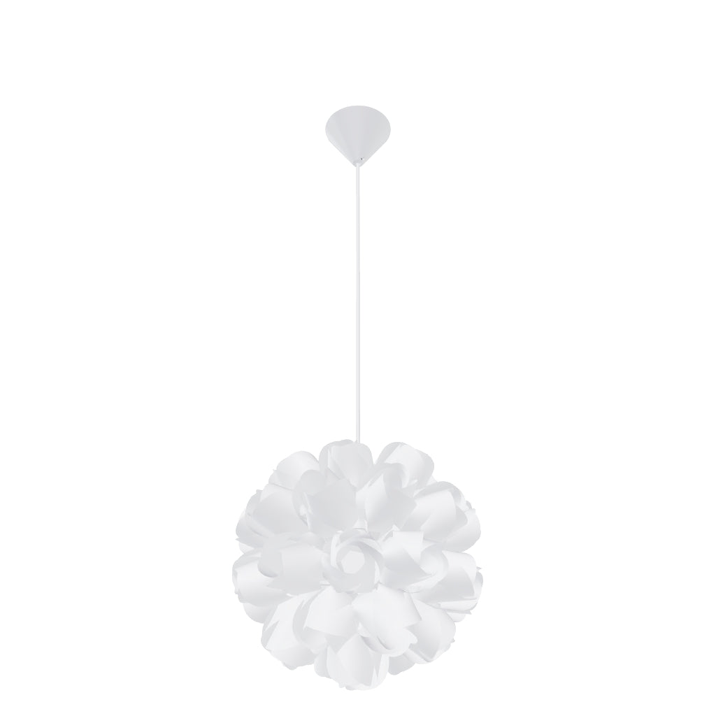 Lampada a sospensione decorativa composta da elementi in plastica con disegno a bocciolo di rosa. Fornita non assemblata, è necessario completarla.
