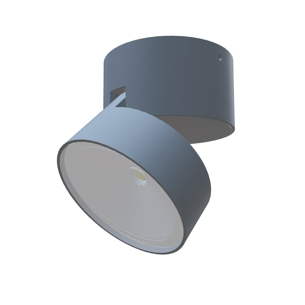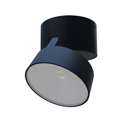 Faretto LED inclinabile per esterni con installazione a soffitto o a parete.