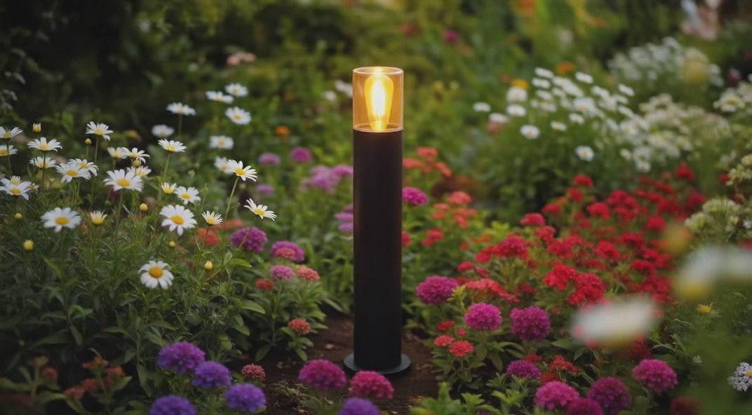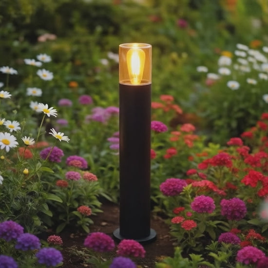 Lampada a terra per esterni con vetro ambrato per l'illuminazione dello spazio con lampadina LED con filettatura E27.