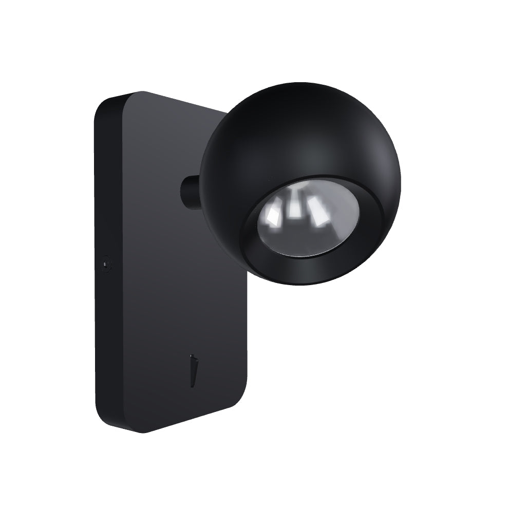 Apparecchio da parete laccato con riflettore inclinabile per sorgenti luminose con presa GU10. L'interruttore è posizionato sulla base dell’apparecchio.