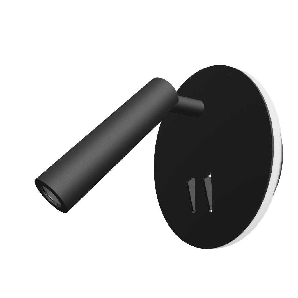 Applique a LED con riflettore completato da un'illuminazione indiretta. L'apparecchio ha due sorgenti luminose che possono essere regolate separatamente da interruttori situati sulla base dell'apparecchio.
