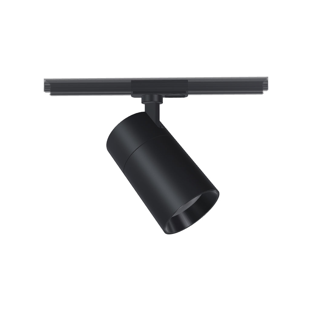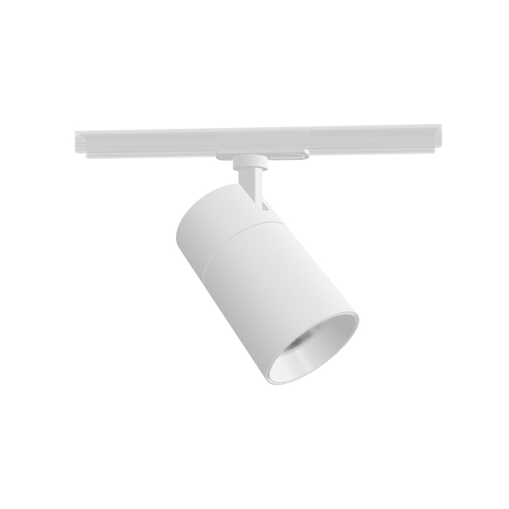 Apparecchio cilindrico dimmerabile per binario monofase con possibilità di impostare il colore di luce: bianco caldo (WW), bianco neutro (NW), bianco freddo (CW). Dimmerazione TRIAC.